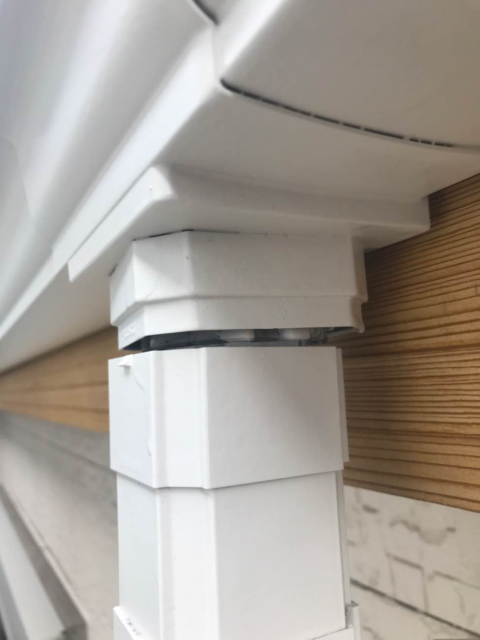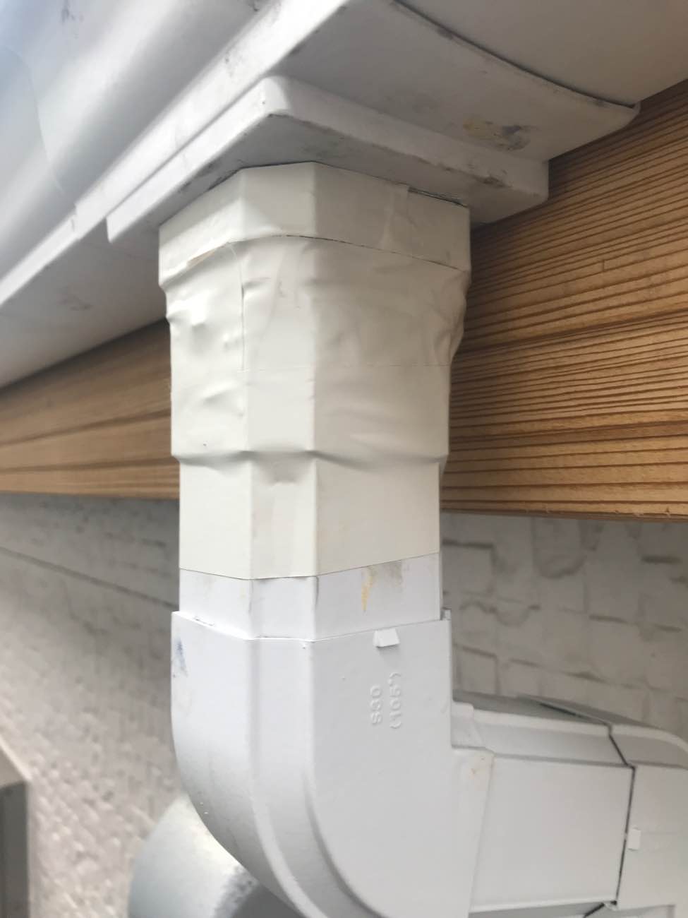 縦樋の接合部にズレが生じ、隙間が開いていました。このままでは雨漏りや機能低下が起こる可能性があります。