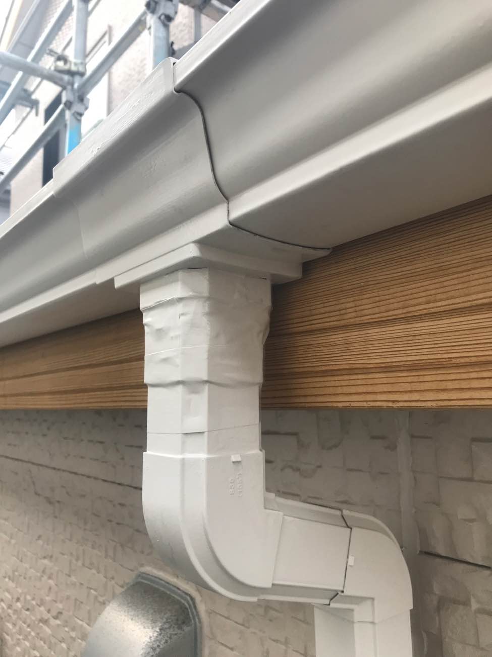 塗装完了後の雨樋は、まるで新品のような仕上がり。外壁と自然に調和し、住まいの印象を引き締めてくれます。