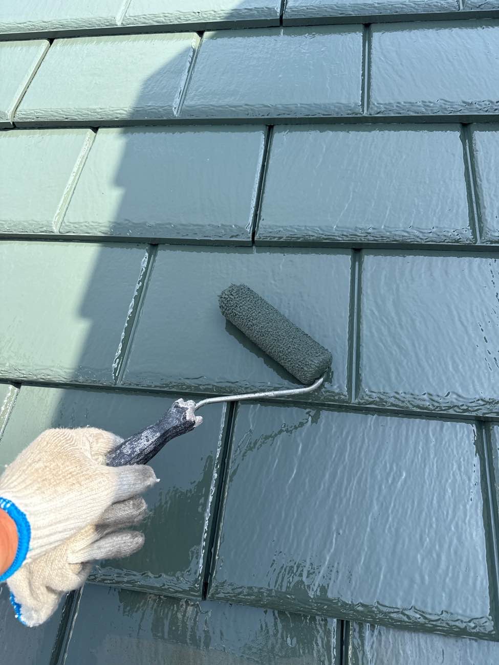 上塗り塗装は、中塗りで形成した塗膜を保護・強化し、屋根塗装としての性能と美観を完成させる重要な工程 です。