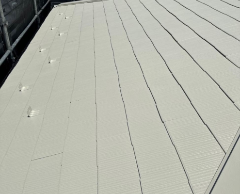 スレート屋根の上塗り塗装(主材2回目の塗布)|東京都板橋区のK様邸にて塗り替え